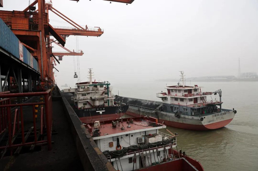 2021年1月份,江储中心货物中转运输再次“爆棚”,进港量72.84万吨,出港量72.6万吨。进出港总量双双刷新月度生产纪录,实现2021年首月开门红。