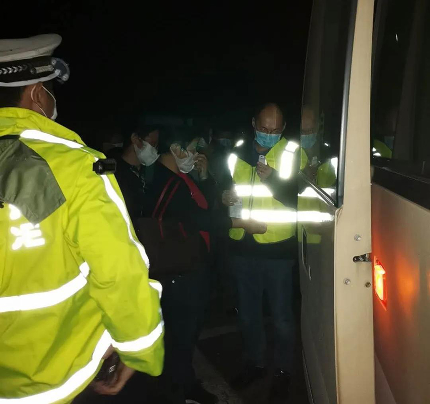 该客车是安徽宿松县人民政府外出务工服务专车。康大高速严格按疫情防控要求,组织人员对司乘人员体温测量以及洗手消毒,分批次将乘客安全转运至大余站,并主动提供口罩、矿泉水、开水,联系送来面包、牛奶等食物,帮助司乘人员缓解焦虑。